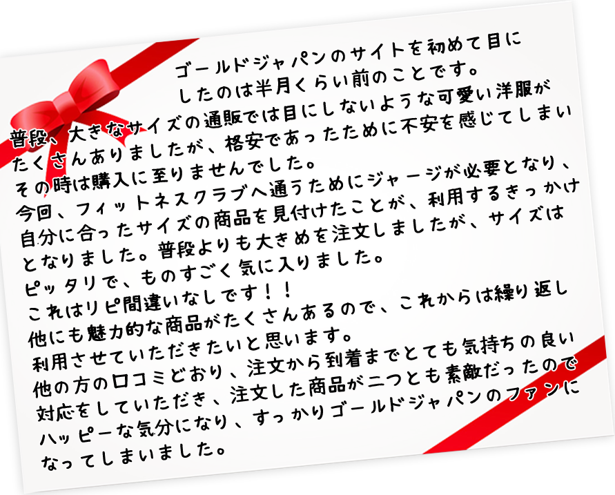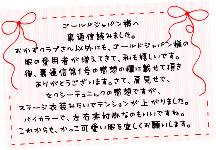 今後もかわいい服を楽しみにしております。取り急ぎお礼まで。