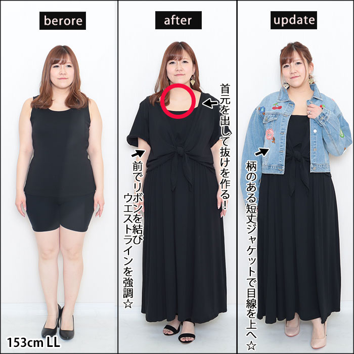 153cmLLサイズの低身長ぽっちゃり女子と164cm4Lサイズの高身長ぽっちゃり女子の着痩せ術☆