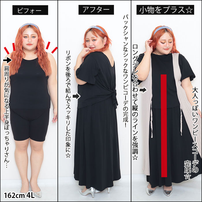 【低身長LLサイズさんと高身長4Lサイズさんのシミラールック着痩せ☆】4/1配信