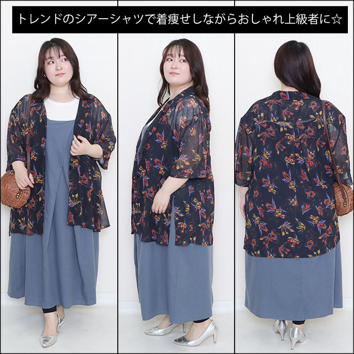 花柄プリントシアーブラウス