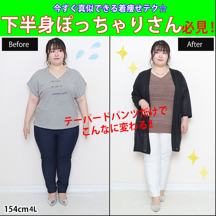 テーパードパンツは下半身ぽっちゃりさんには必見のオススメ着痩せアイテムです♪