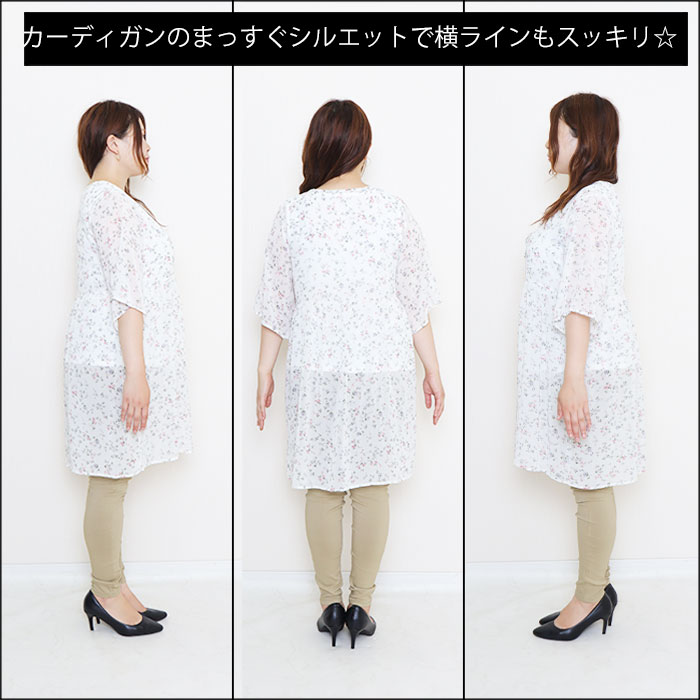 ボリューム袖トップス、花柄カーディガンは胸を目立ちにくくできちゃうオススメ着痩せアイテムです☆