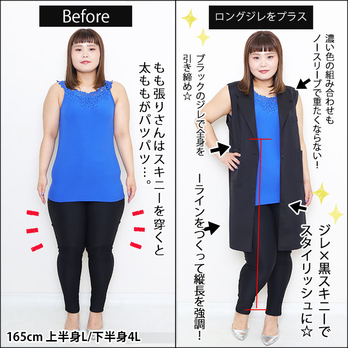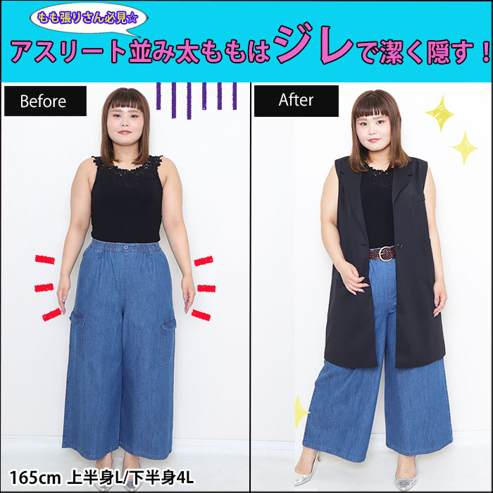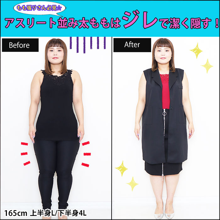 165cm、上半身L/下半身4Lサイズのぽっちゃり女子の着痩せ術♪