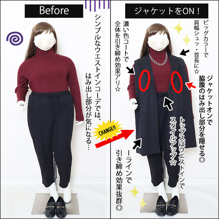 ◆ジャケットオンで脇腹のはみ出し部分を隠せる!