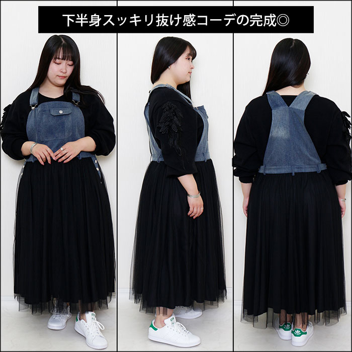 チュールドッキングデニムサロペットスカート