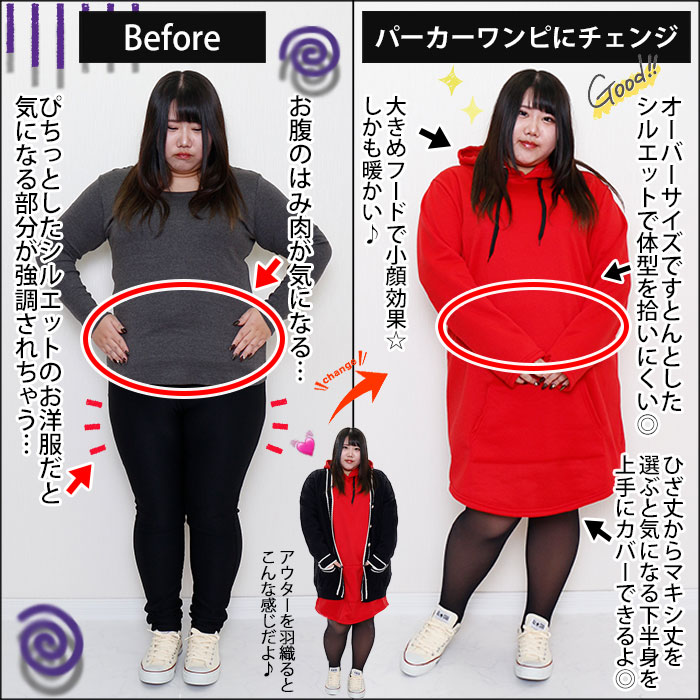 ◆オーバーサイズのパーカーワンピですとんとしたシルエットに!体型を拾いにくい☆