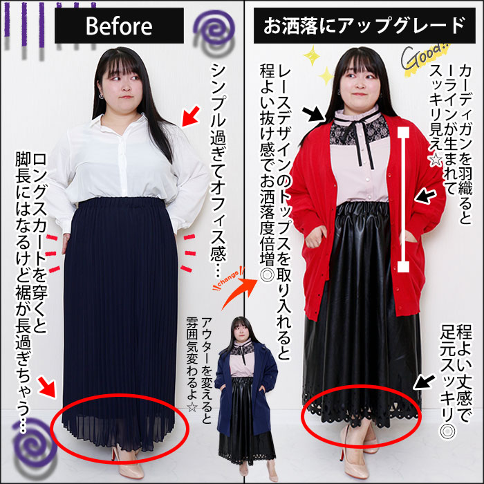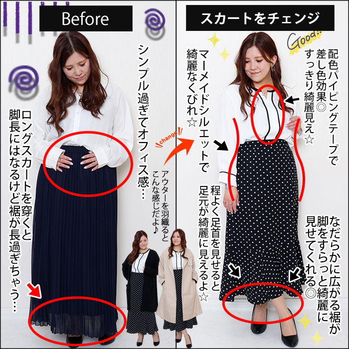 ロングスカートを穿くと脚長には見えるけど裾が長過ぎちゃう…