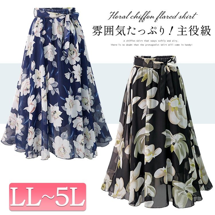 花柄シフォンフレアスカート