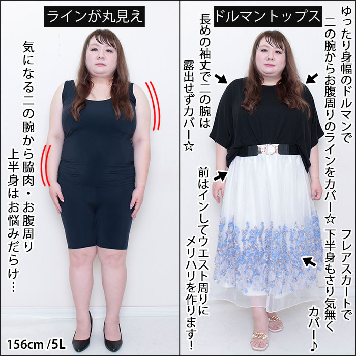 ◆ゆったり身幅のドルマンで二の腕からお腹周りのラインをカバー!
