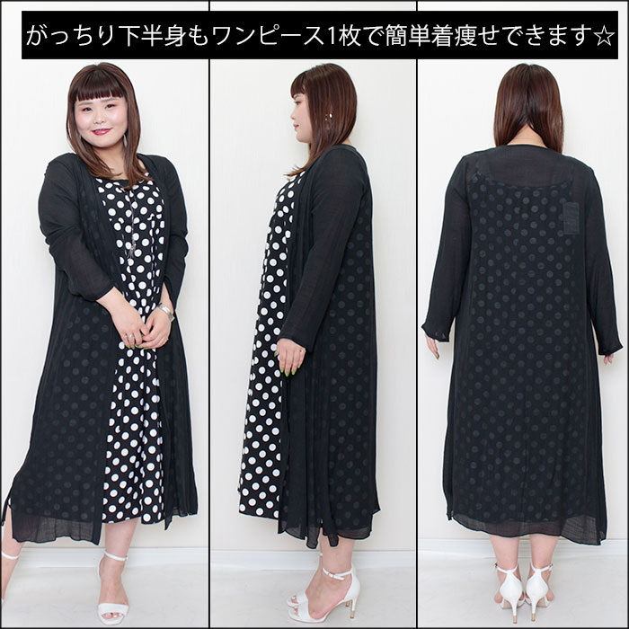ロングカーディガン&ドット柄キャミワンピース