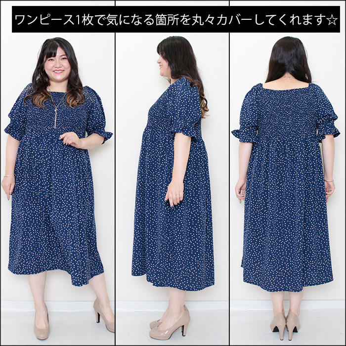ドット柄シャーリングワンピース
