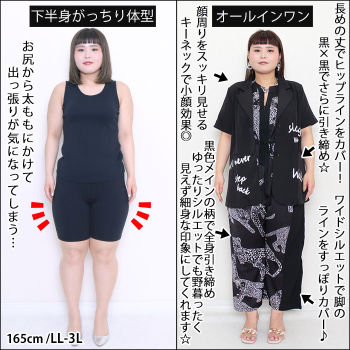 ◆黒色メインの柄で全身引き締めゆったりシルエットでも野暮ったく見えず細身な印象にしてくれます☆