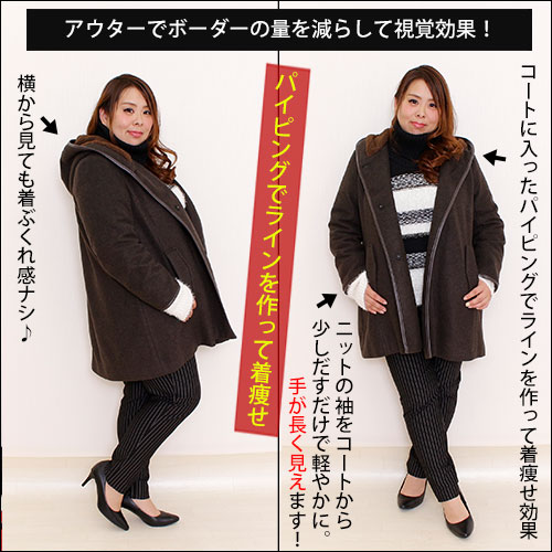 ✔︎パイピング入りのコートでラインを作る&ボーダーの量を減らして細見え