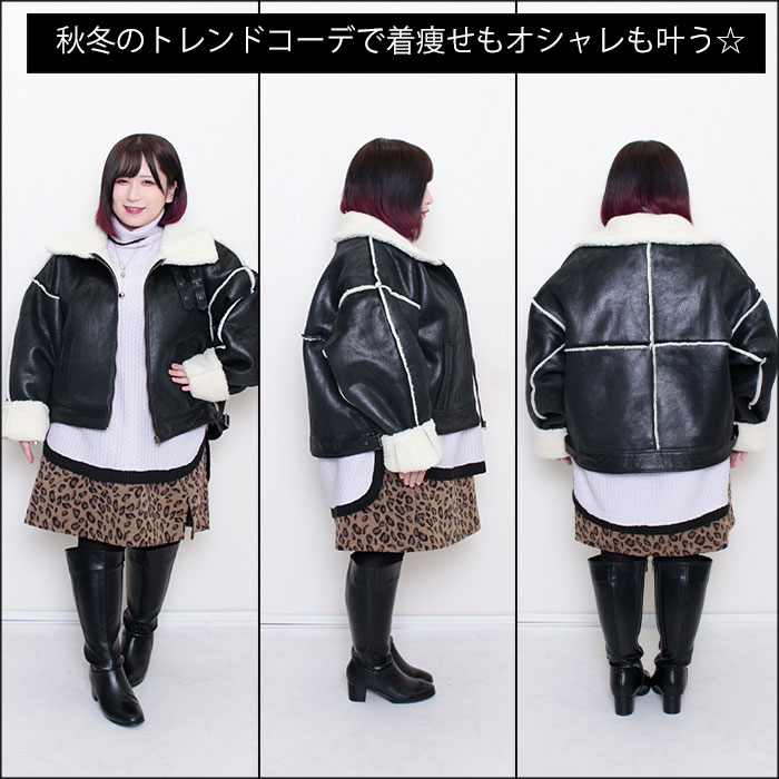 ◆ボアが付いているからブラックのフェイクレザーでもハードすぎない!