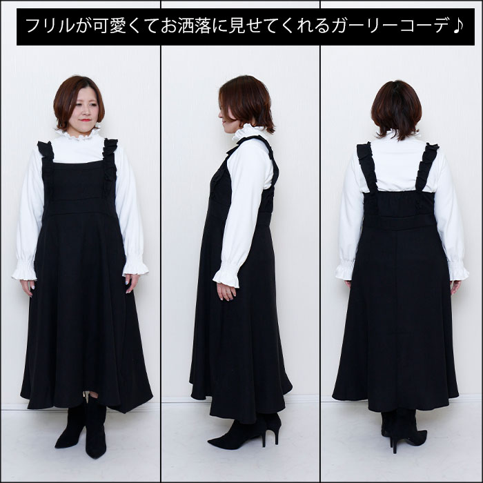 フリルネックトップス&ジャンパースカート2点セット