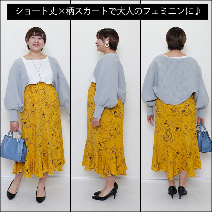 ◆ショート丈のカーディガンで全体のバランスが◎大きく見えない!