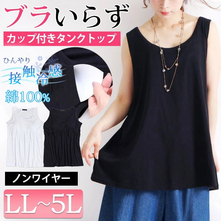 接触冷感ブラカップ付きロングコットンタンクトップ