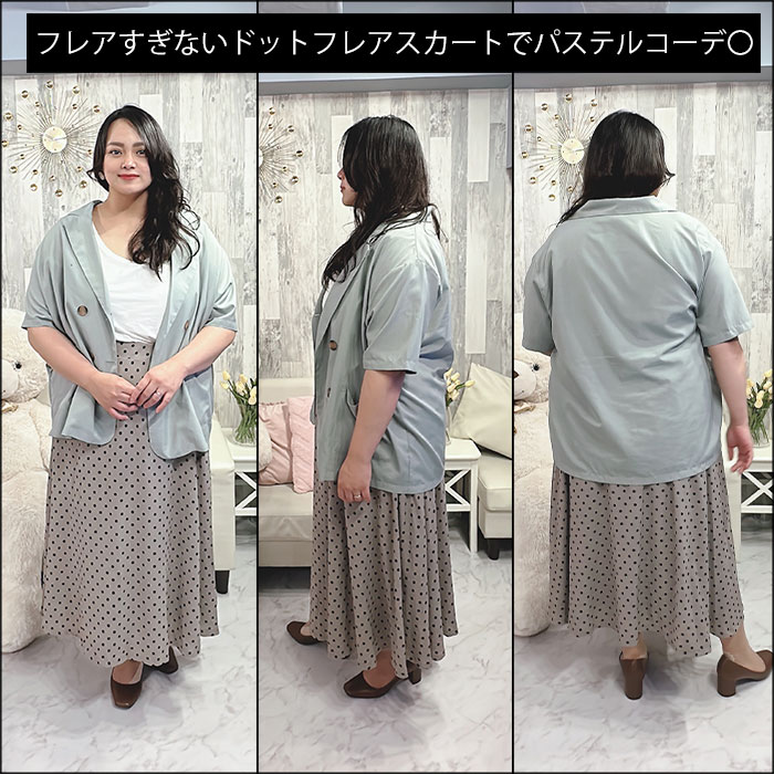 フレアすぎないドットフレアスカートでパステルコーデ〇