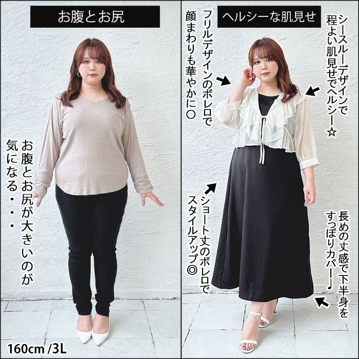 ◆フリルデザインのボレロで顔まわりも華やかに〇