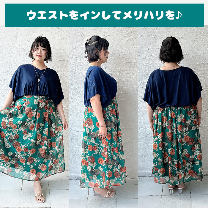 ◆ふんわり花柄ロングスカートで下半身まわりも目立ちません♩
