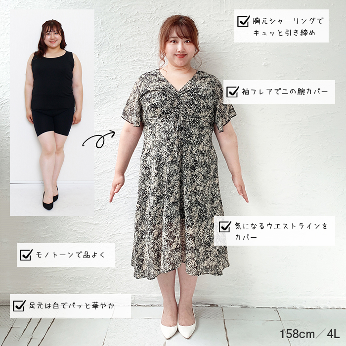気になるウエストラインをカバーする形+モノトーンで品よく♪