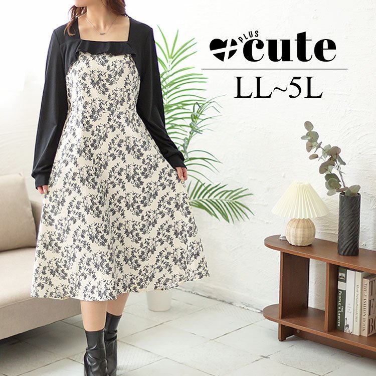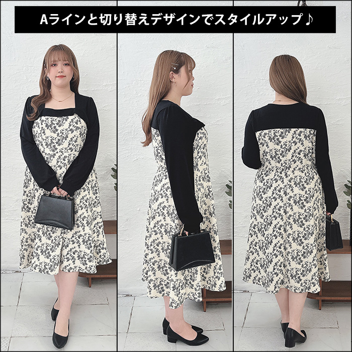 花柄切替えワンピース