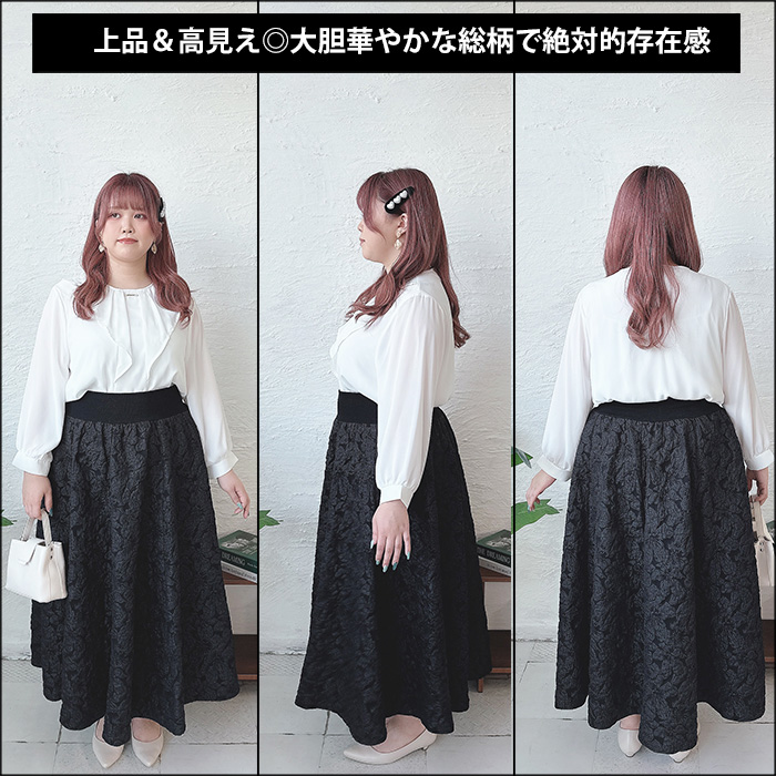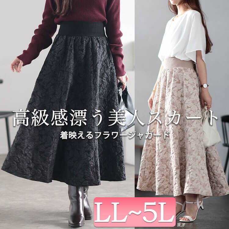 フラワージャガード太リブボリュームフレアスカート