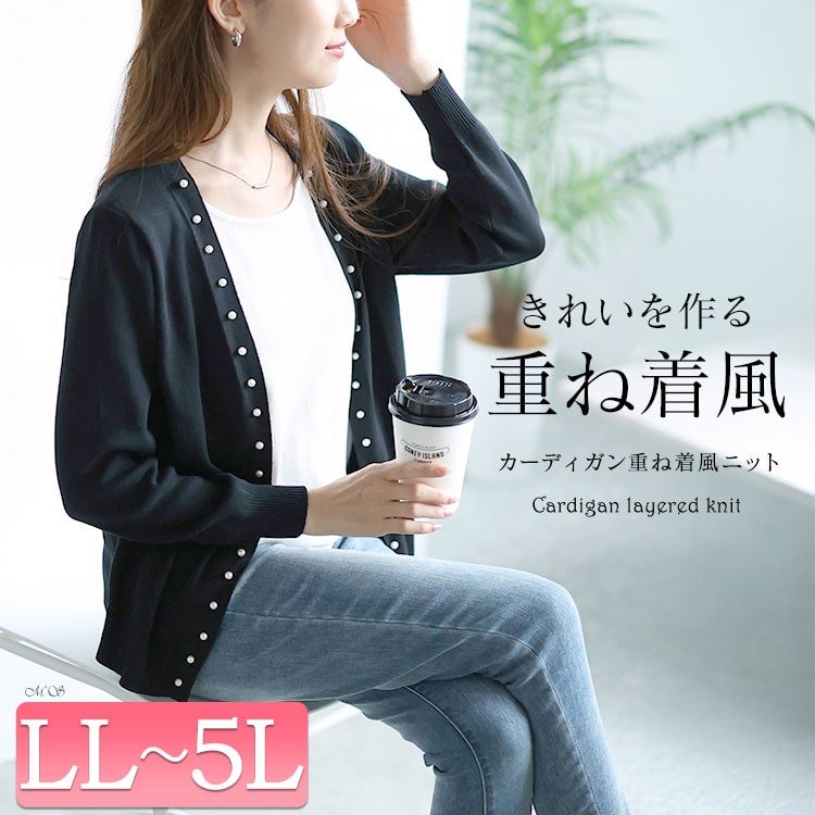 カーディガン重ね着風ニットトップス