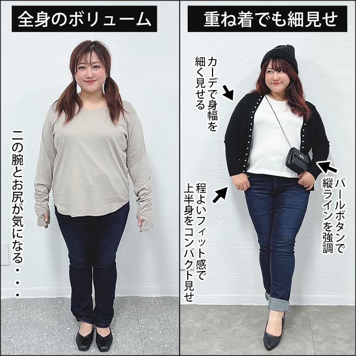 カーデで身幅を細く見せる