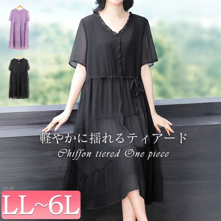 ウエストリボンシフォンティアードワンピース