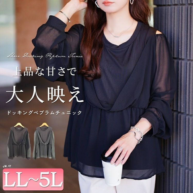 オープンショルダー重ね着風ペプラムチュニック