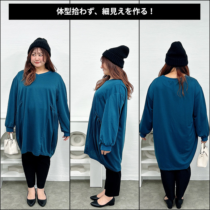 脇ギャザー切り替えコクーンチュニック