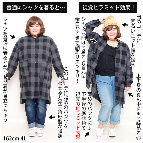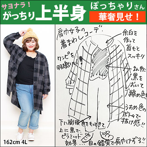 162cm、4Lサイズのぽっちゃり女子の着痩せ術