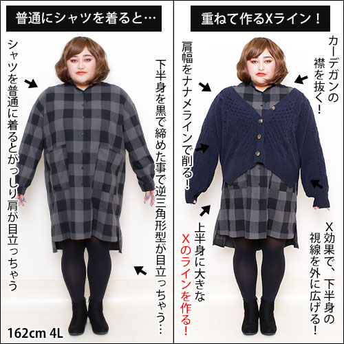 162cm、4Lサイズのぽっちゃり女子の着痩せ術