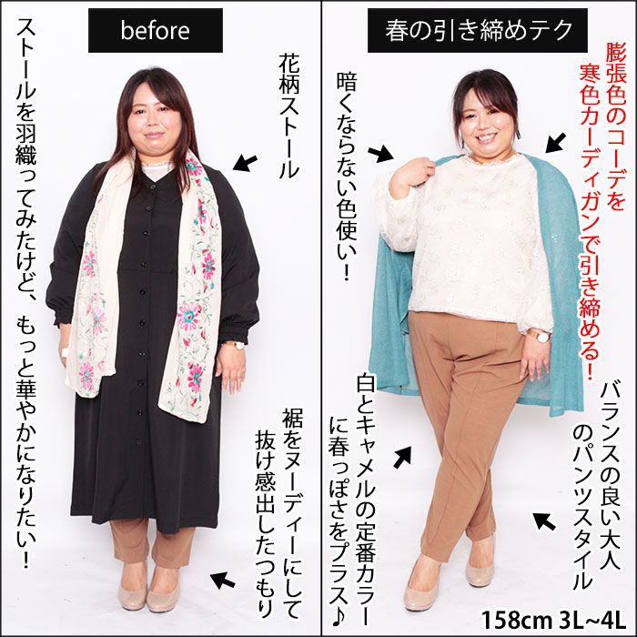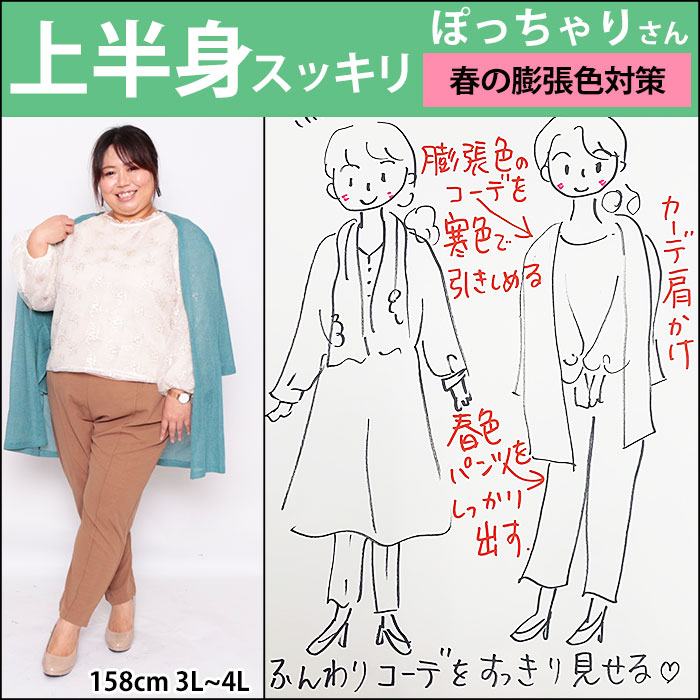 158cm、3L~4Lサイズのぽっちゃり女子の着痩せ術