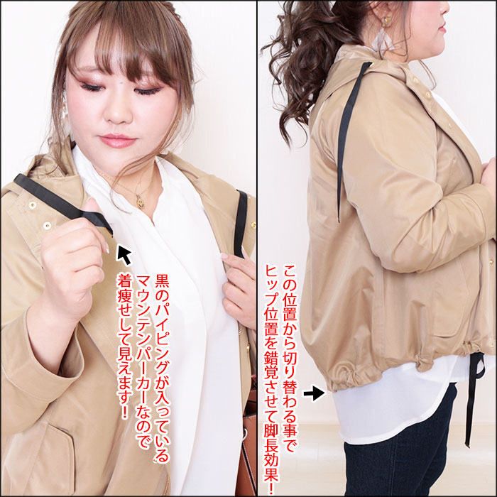 ◆黒パイピングが入ったマウンテンパーカーなので着痩せ効果がありますよ☆