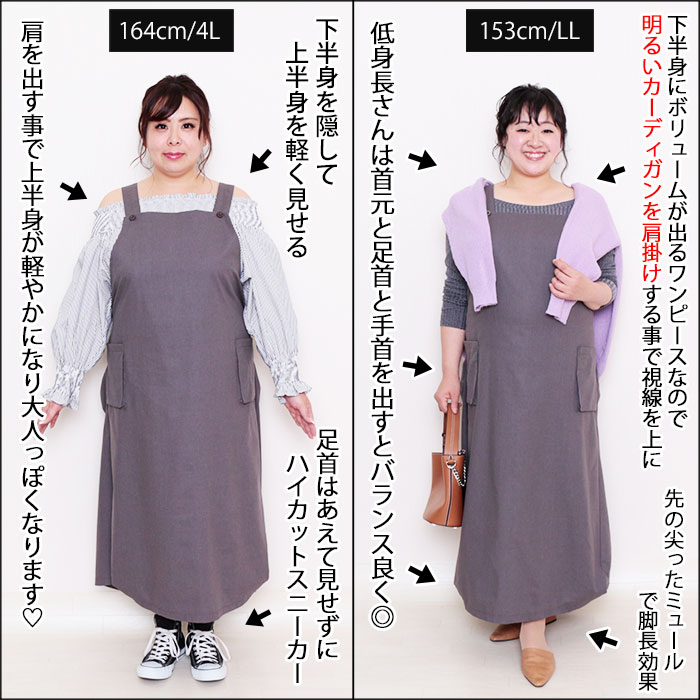 153cm、LLサイズと164cm、4Lサイズのぽっちゃり女子の着痩せ術