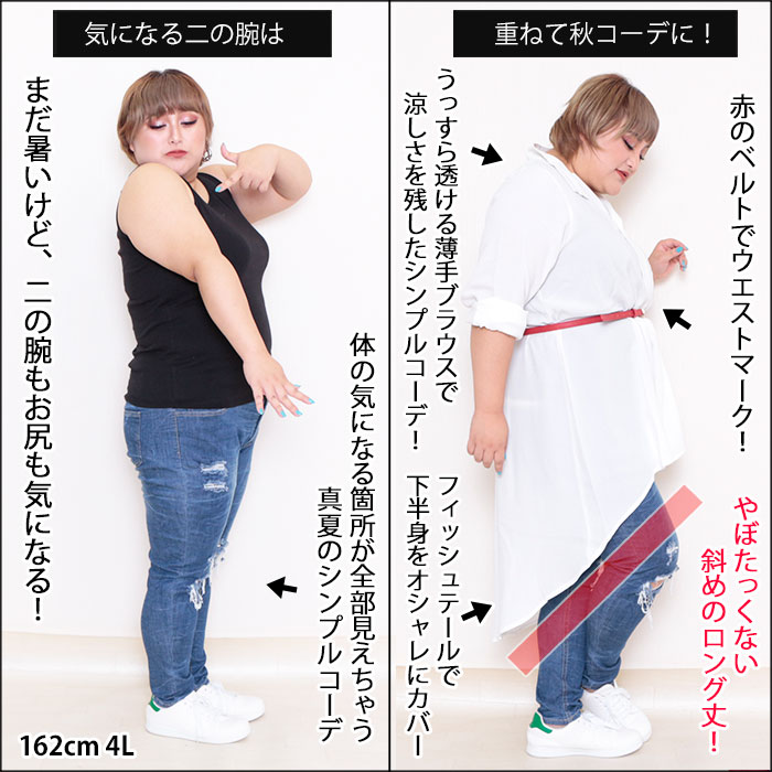 162cm、4Lサイズのぽっちゃり女子の着痩せ術