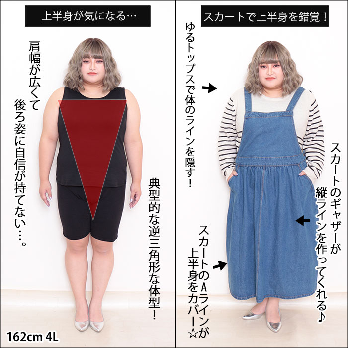 162cm、4Lサイズのぽっちゃり女子の着痩せ術
