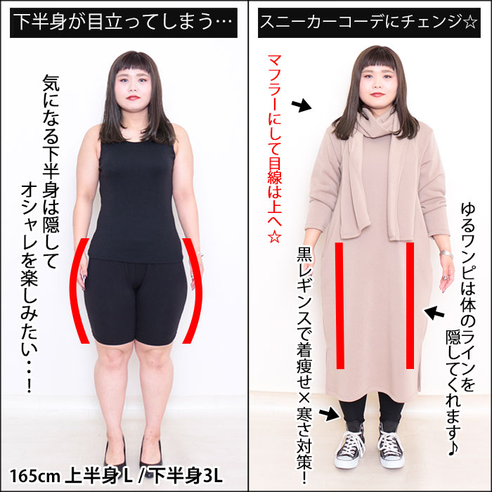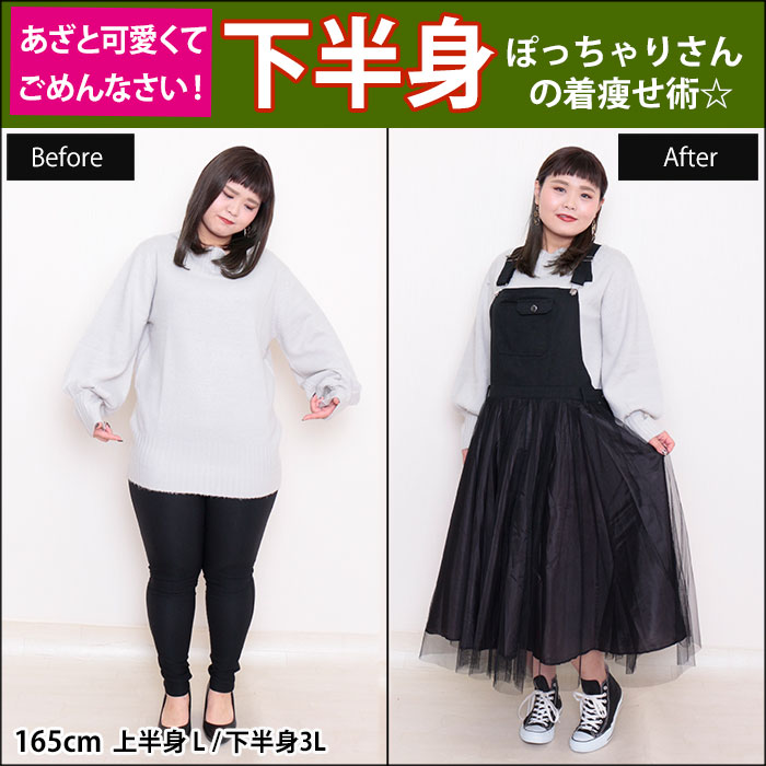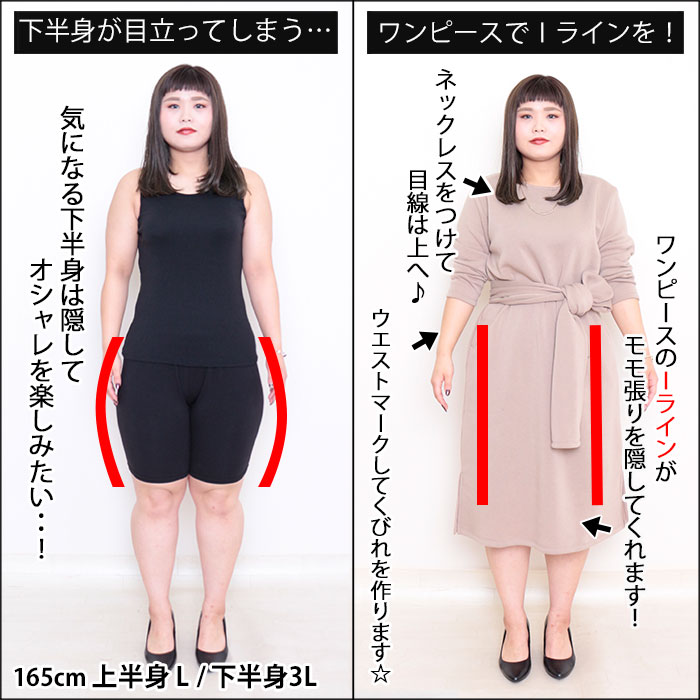 165cm、上半身L 下半身3Lサイズのぽっちゃり女子の着痩せ術