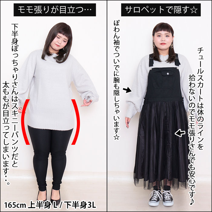 サロペットスカートは気になる下半身のモモ張りを全部カバーしてくれるんです(^^)/
