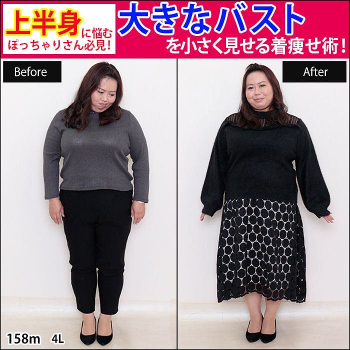 158cm、4Lサイズのぽっちゃり女子の着痩せ術