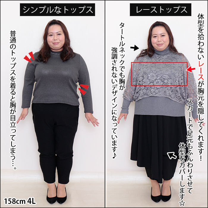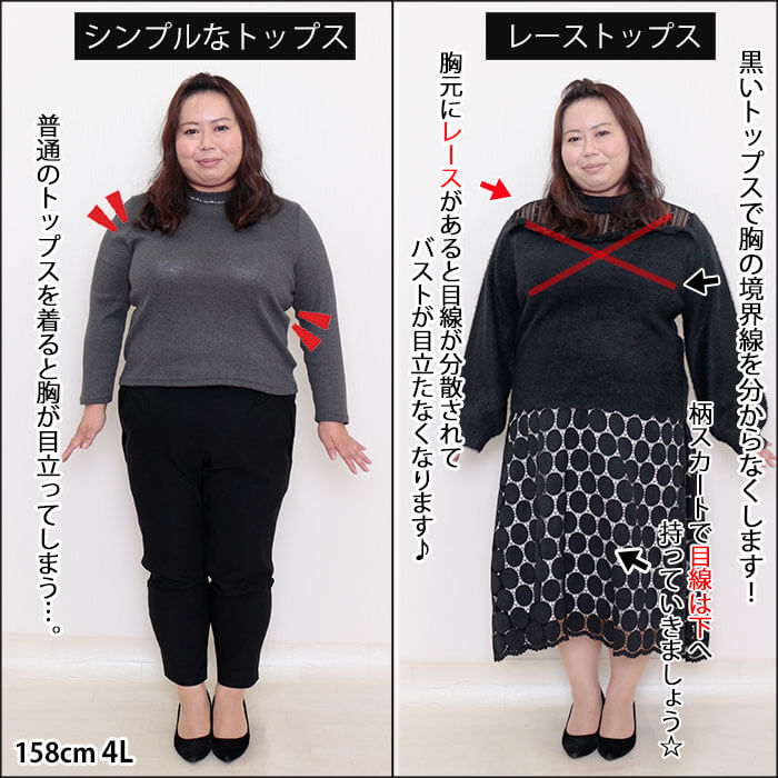 レース使いで大きなバストを自然に目立たなく、オシャレもワンランクUP出来ちゃうんです!
