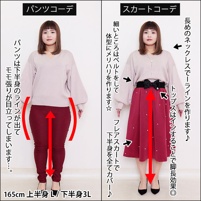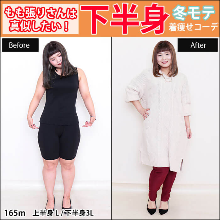 165cm、上半身L、下半身3Lサイズのぽっちゃり女子の着痩せ術