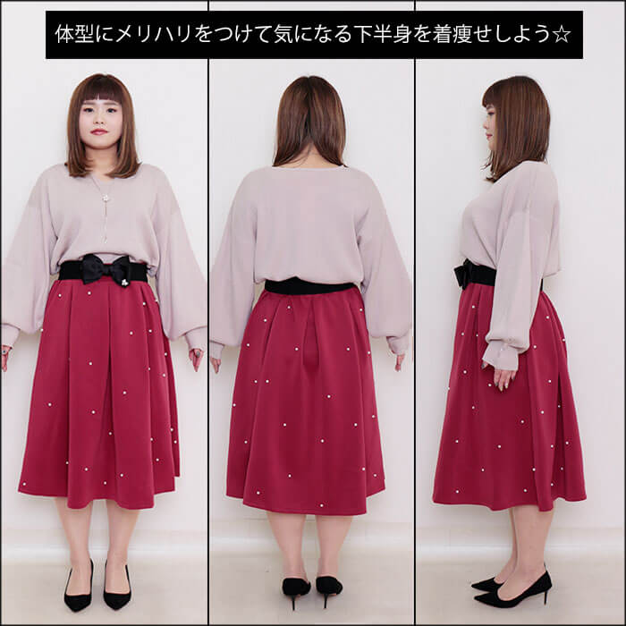 ☆下半身だけがポンと出た体型の方はフレアスカートで見た目-2サイズも可能♪