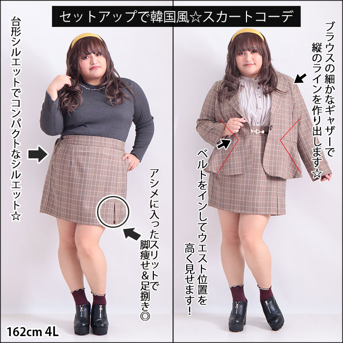 4Lモデルサキちゃんがデザインしたこだわりの詰まったチェック柄セットアップで着まわしコーディネート♪韓国ファッションはもちろん♪カジュアルにも、卒業式、オフィスにも使えちゃう!!