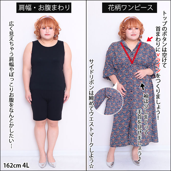 162cm、4Lサイズのぽっちゃり女子の着痩せ術