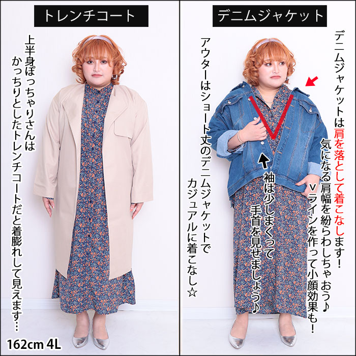 ◆上半身ぽっちゃりさんさかっちりとしたトレンチコートだと着膨れして見えます…